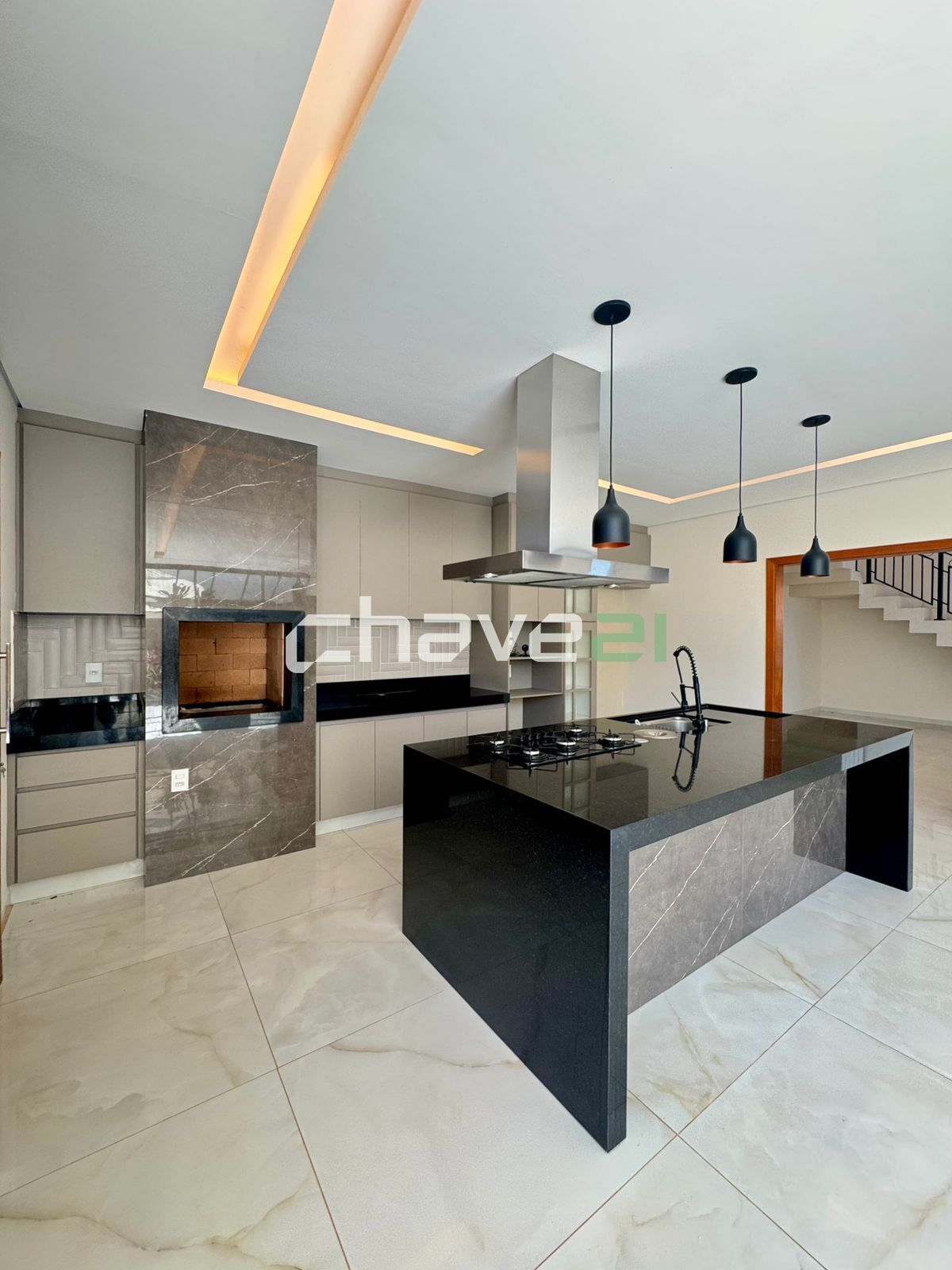 - Cozinha gourmet com cooktop e forno embutidos
