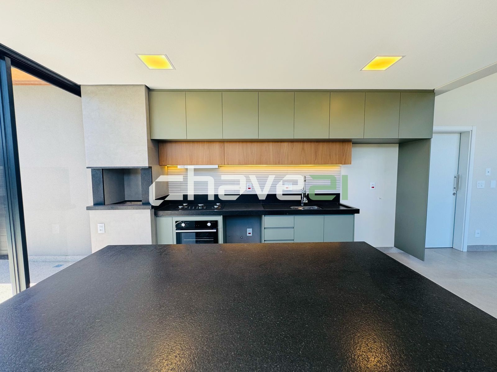 ✅ Cozinha moderna integrada ao espaço gourmet