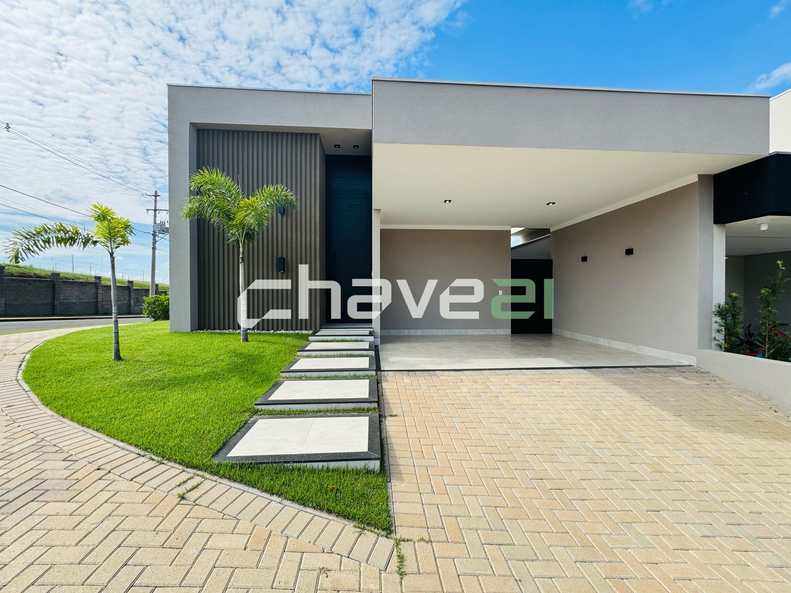 ✅ Fachada moderna, com iluminação decorativa e jardim harmonioso