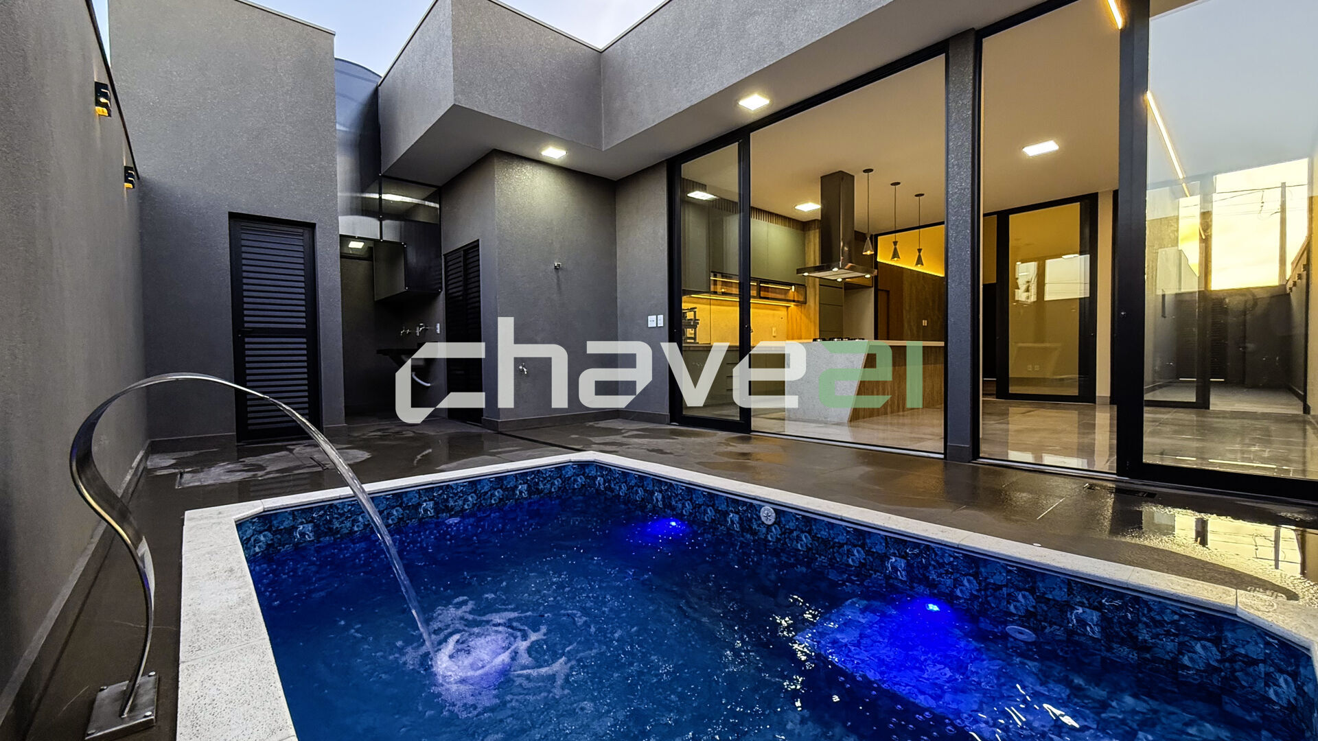 - Piscina com hidromassagem, iluminação em LED e cascata