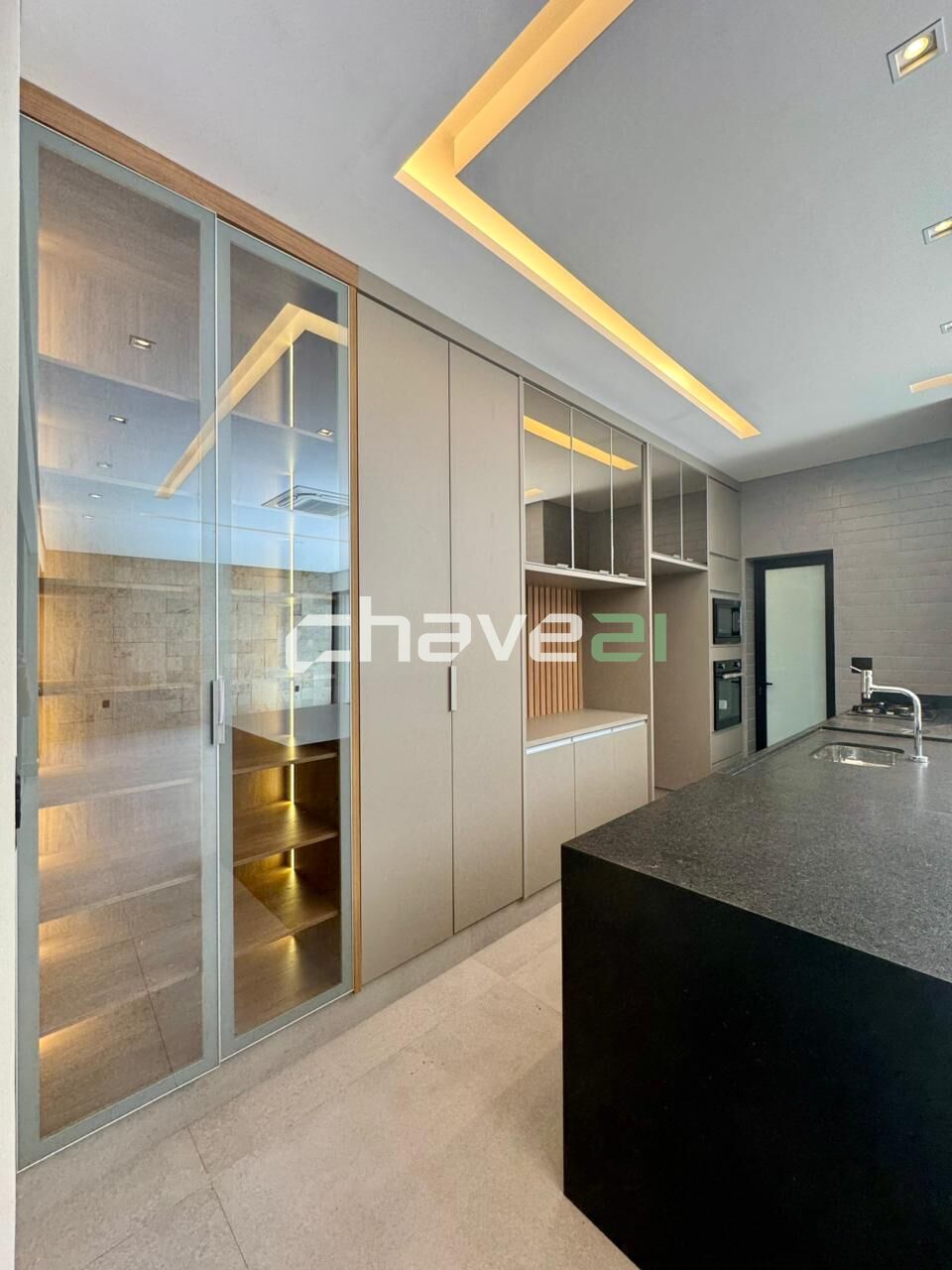 - cozinha integrada ao espaço gourmet, equipada com cooktop, forno e micro-ondas